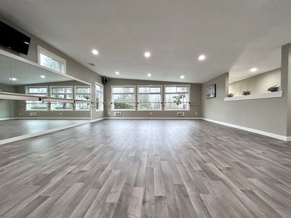 Studio 267 offers 1000sqft of inspiring space with sprung vinyl floors, 30' of mirrors, 65' of barre space and tree, sky and farm views from every window. Schedule time to create your next choreographic masterpiece! (Note: max occupancy of the studio is 10 individuals.)